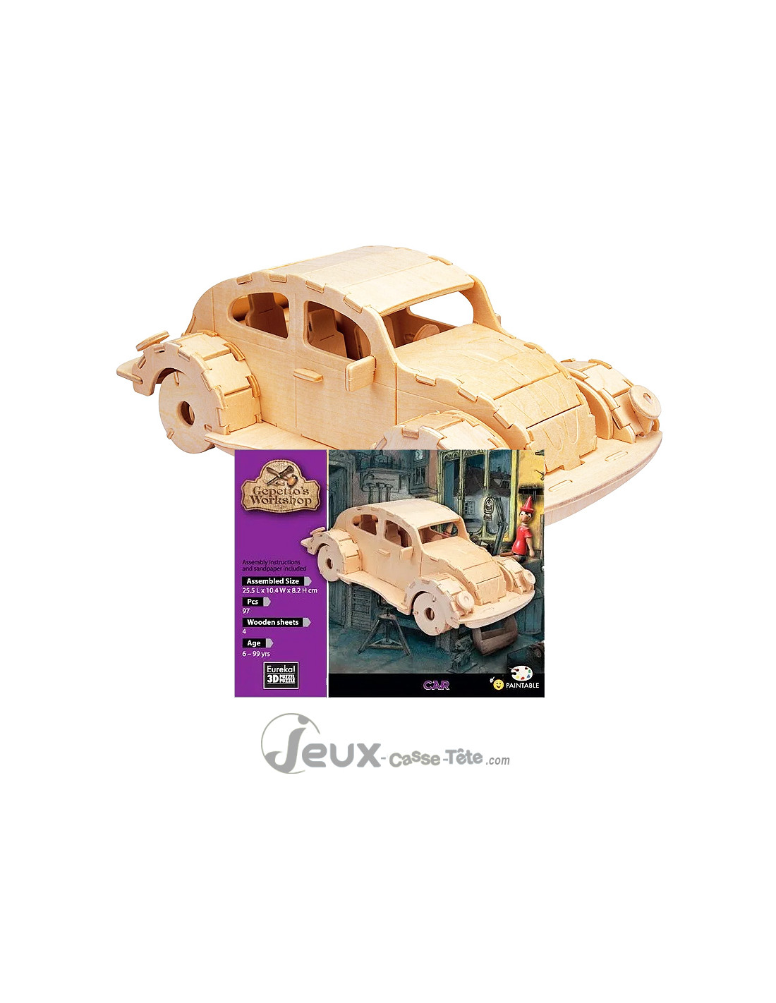 Puzzle 3d en bois voiture 96 pièces fabriquez puis décorez